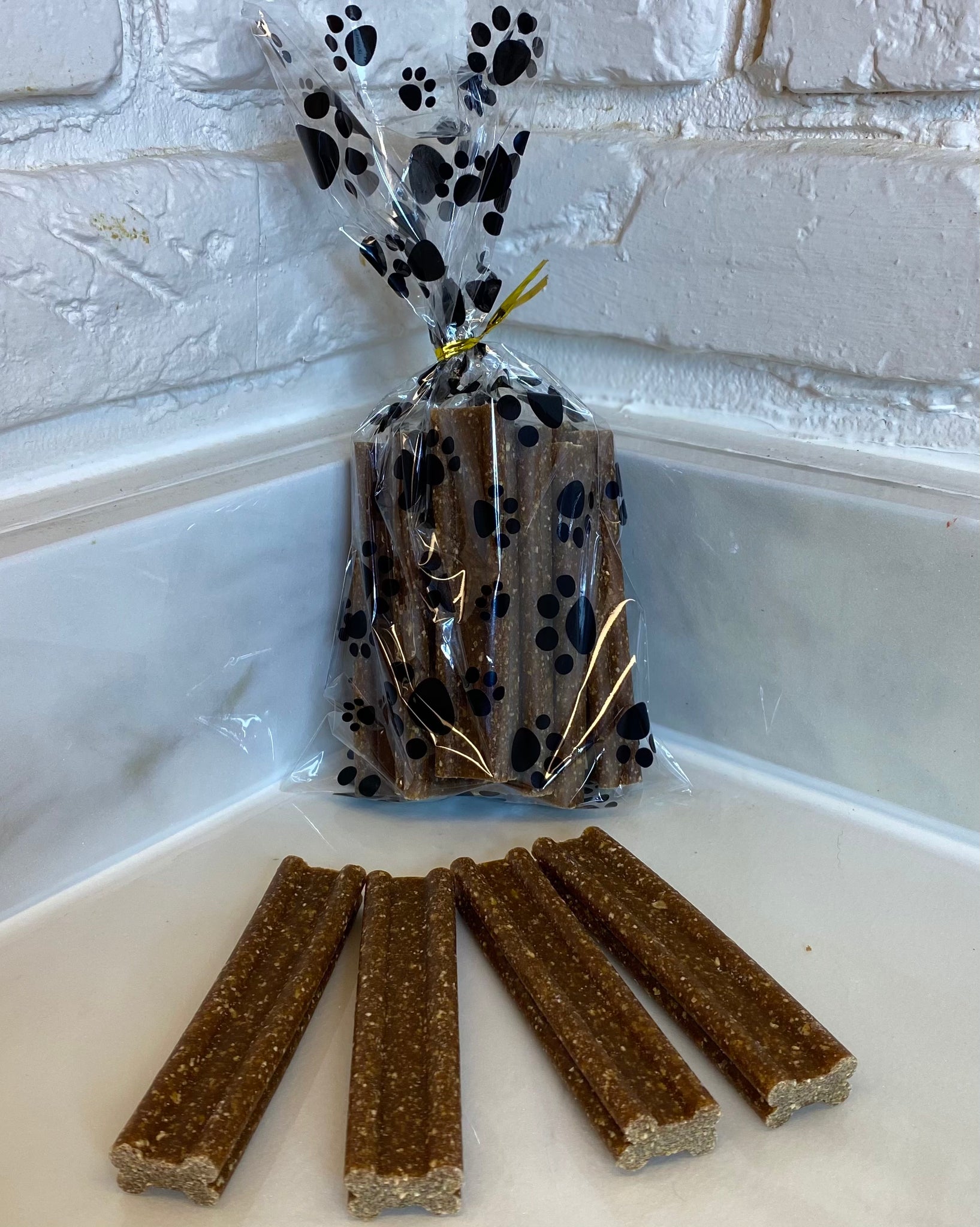 This bundle features our Pumpkin Chews! These treats can easily be broken in half or chewed into smaller bites, yet are hard to the touch. These treats provide a longer lasting chew and all natural ingredients!